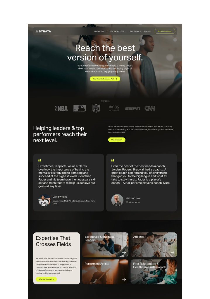 Lightning-fast, technically bulletproof websites paired with content strategies that rank and convert. Full audits to focus on your best opportunities, technical speed and structure that appeals to search engines and LLMs, amazing design and branding, and ongoing optimization.
